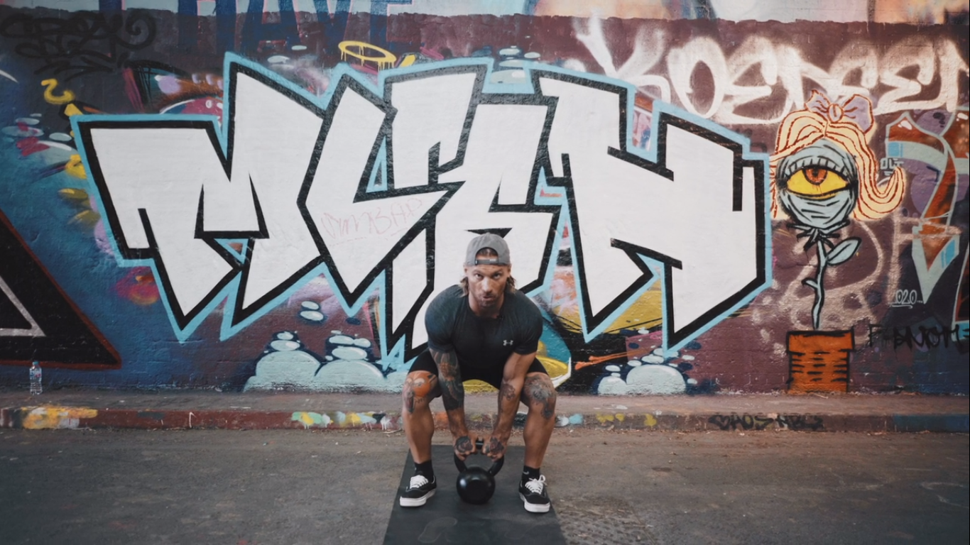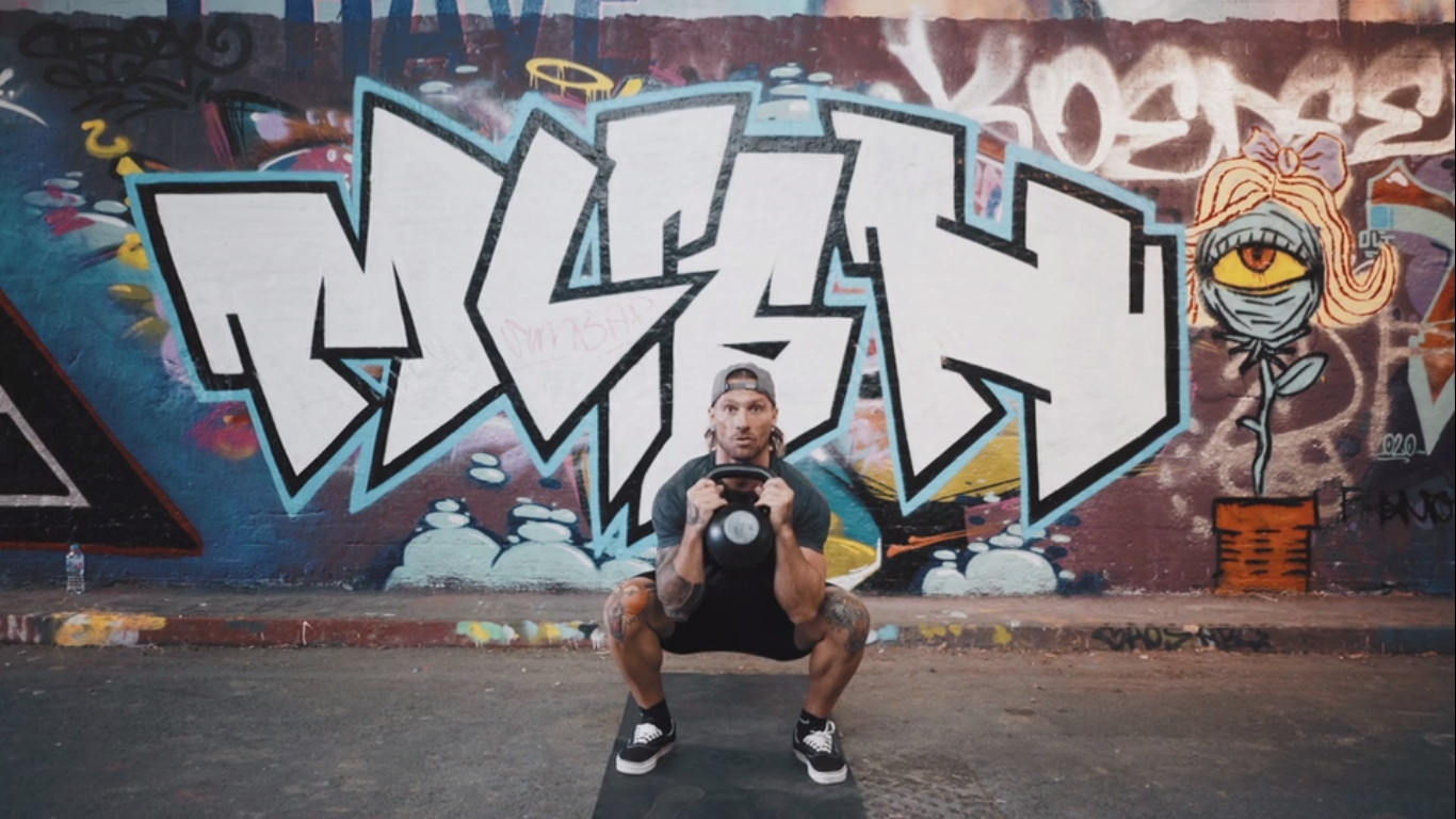 Get the kettlebell back to chest and then reset to the floor. Pack the shoulders, push the floor way, squat clean and then punch the kettlebell overhead. Return the kettlebell to the chest and reset to the floor. Repeat until you have completed your reps.